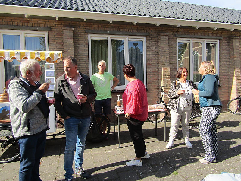 Dat ging er na het andere lekkers ook nog wel in... en intussen nog even een gezellig praatje in de zon, voor men weer naar huis ging.