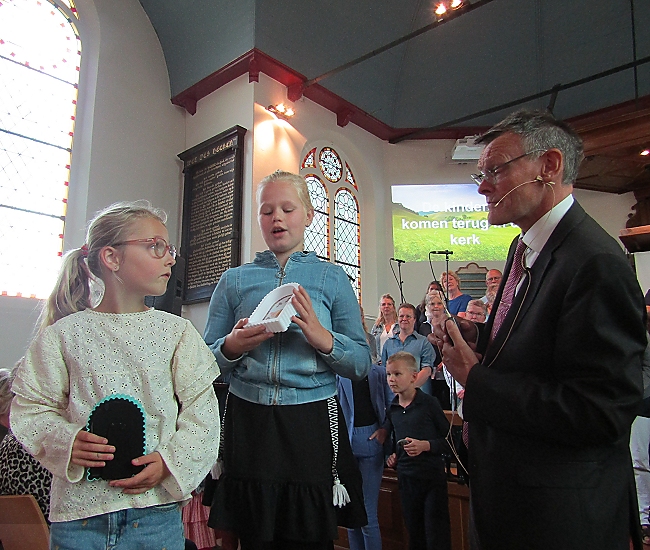 Drie kinderen die inmiddels 12 waren, naar het voortgezet onderwijs gingen en afscheid moesten nemen van de kindernevendienst, kregen van Janke van der Meulen, ouderling van dienst, ieder een Bijbel uitgereikt. Er werd nog een vergelijking gemaakt met het joodse Bar-Mitswa (zoon van het gebod) waarbij dertienjarigen als volwassen lidmaten opgenomen worden in de joodse gemeente, waar dan een groot feest aan verbonden is.