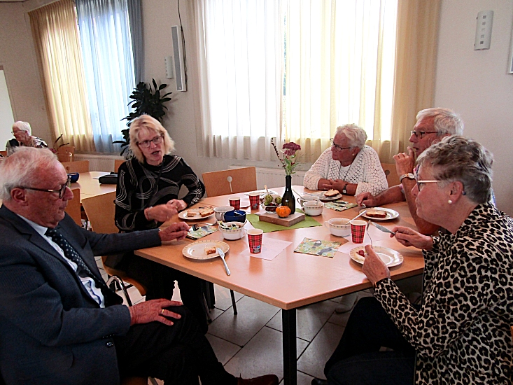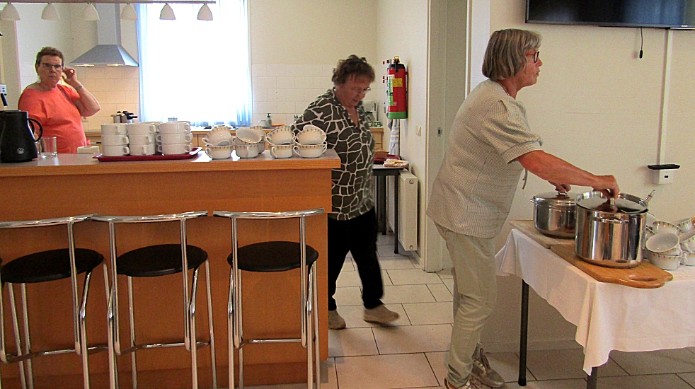 En ten slotte de lunch, die welvoorzien en lekker was, met soep vooraf; rond half 2 ging men verzadigd weer naar huis.