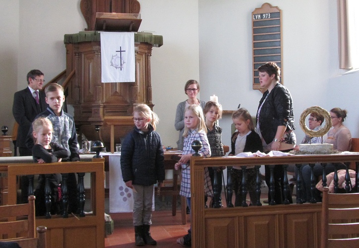 Enige leden van de cantorij zongen op deze eerste zondag van maart het Lied van de maand voor, nr. 973.