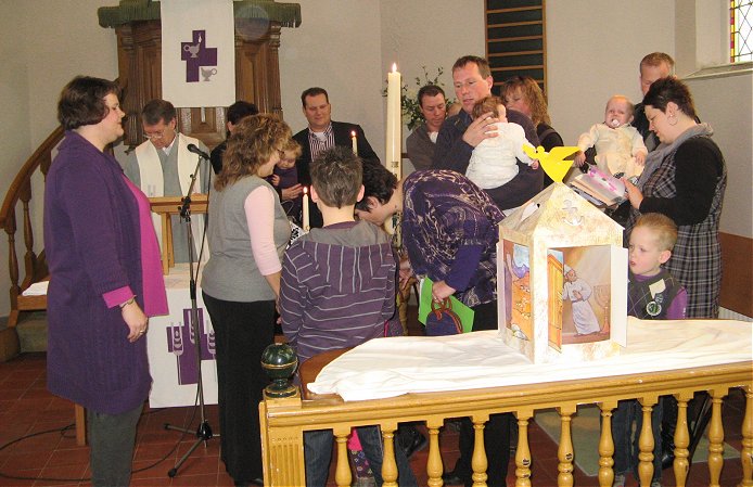 De vier dopelingen worden door hun ouders voorgesteld aan de gemeente.![]()