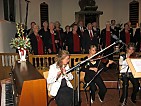 De belangstelling was groot, de kerk zat vol, er werden zelfs nog een paar stoelen bijgezet. De voorzitter Sjoerd Woudstra sprak een woord van welkom, waarna het zingen begon, ook de gemeente zong bepaalde coupletten mee.