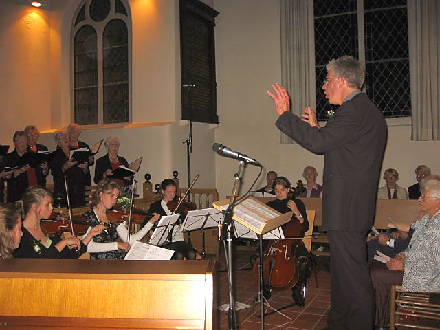 Dirigent Henk Visser, die dit voorjaar zijn 10-jarig jubileum bij het koor vierde, heeft zelf veel liedbewerkingen gemaakt in de loop der jaren. Hij leidde ook nu het koor, maar de vroegere dirigent Tjibbe Reitsma trad ook nog een keer op, bij het lied "Grut is Jo namme". Tevens was hij deze avond de organist.
