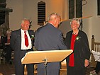 v.l.n.r : Sijke van Gorkum (55 jaar lid), vice-voorzitter P. de Vries, en Yttje Sikma (61 jaar lid)