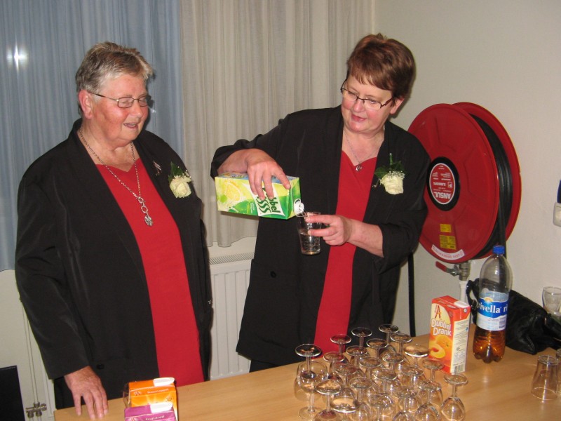 De jubilaressen, v.l.n.r. : de dames A. Grouwstra (28 j. lid), S. van Gorkum (60 j. lid), F. Sikkema (50 j. lid),