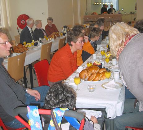 Dit jaar was er weer een gezellig paasontbijt in De Sanjes voor de kerkdienst begon.