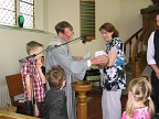 Behalve een paasviering was dit een bijzondere dienst: de doop van drie kinderen van Michel en Jannette van der S.