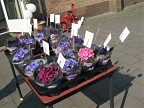 Voor de ingang van de Sanjes stonden weer tafels vol paasbloemetjes, die men kon meenemen voor dorpsgenoten die wat extra aandacht nodig hebben. Deze keer waren het Kaapse viooltjes (Saint Paulia's), mooie plantjes in verschillende kleuren.